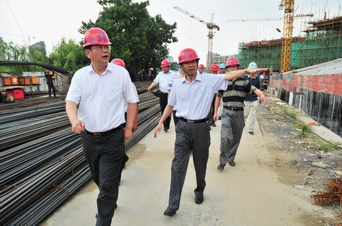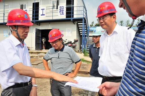 陳揚副市長視察建設大廈工地 時間:2011-08-12 4997 8月12日下午,揚州市政府副市長陳揚、市建設局局長楊正福一行前往江蘇華建代建的揚州建設大廈暨規劃展覽館、市民中心項目工地現場視察。揚州建工控股公司、江蘇華建董事長陸金龍陪同視察,并將工程施工進展情況向陳副市長作了簡要匯報。陳副市長對建設大廈總體施工進展表示滿意,并提出希望所有參建單位精心組織,科學管理,確保這一政府重點工程建設順利推進。公司領導程杰等一起陪同視察。