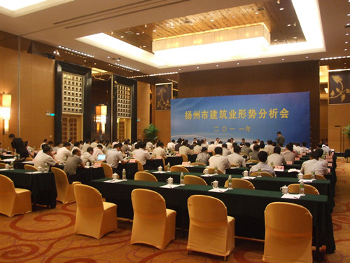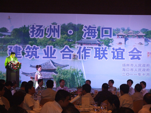10月20日,揚州·海口建筑業(yè)合作聯(lián)誼會暨1-3季度揚州建筑業(yè)形勢分析會議在海口市文華大酒店隆重召開,揚州市委常委、副市長陳揚、市人大副主任高瑞芹、市政協(xié)副主席朱正海等領(lǐng)導(dǎo)參加了會議。陳揚副市長指出此次會議主要是認(rèn)真貫徹落實揚州市第六次黨代會精神,回顧總結(jié)今年以來全市建筑業(yè)運行發(fā)展情況,研究部署下一階段重點工作,特別是分析研判國務(wù)院加快建設(shè)海南國際旅游島的政策機(jī)遇,進(jìn)一步拓展深耕海南建筑市場,推動建筑業(yè)總量擴(kuò)大、績效提升,確保全面完成全年目標(biāo)任務(wù)。高瑞芹副主任宣讀了“關(guān)于表彰2010年度揚州市建筑業(yè)綜合實力20強(qiáng)企業(yè)的決定”,江蘇省華建建設(shè)股份有限公司榮獲“房屋建筑類10強(qiáng)企業(yè)”,海口市建設(shè)局卓桂勇副局長介紹了海口市建筑市場情況,王宏副總經(jīng)理代表市建工控股公司、華建公司作了交流發(fā)言。