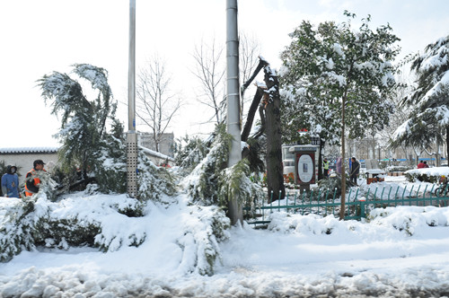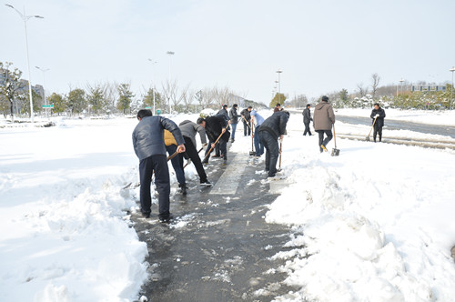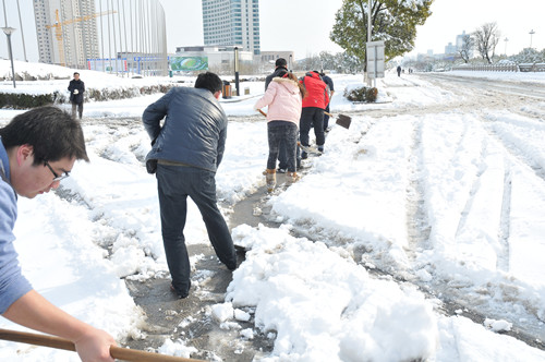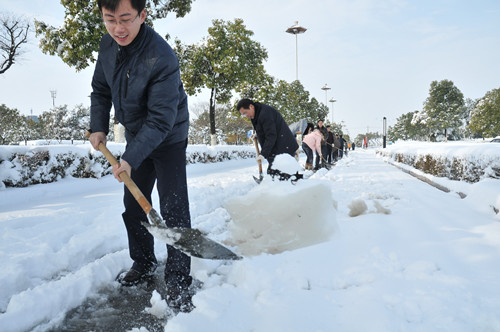 公司總部組織員工上路清掃積雪 時間:2013-02-19 4028 2月18日至19日凌晨,揚州出現低溫降雪災害天氣,降下了多年罕見的一場大雪,壓垮樹枝和部分房屋設施,并造成道路交通不便。19日清晨,公司響應市政府號召,組織20余名員工上路清掃積雪,公司領導吳士茂、錢啟明親自參加,與大家共同會戰(zhàn)2個多小時,完成了清掃任務。 厚重的積雪壓垮樹枝
