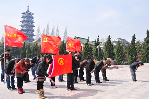 總部開展祭掃革命烈士墓活動 時間:2013-04-03 4192 4月3日,總部機關黨支部和團委聯合開展祭掃革命烈士墓活動,總部機關、華建置業20余名同志參加。紀委副書記、黨辦主任陳緒寶主持活動,副總經理兼總工程師程杰帶領大家向烈士紀念碑三鞠躬,并敬獻了鮮花,隨后大家共同參觀了烈士英雄事跡展。