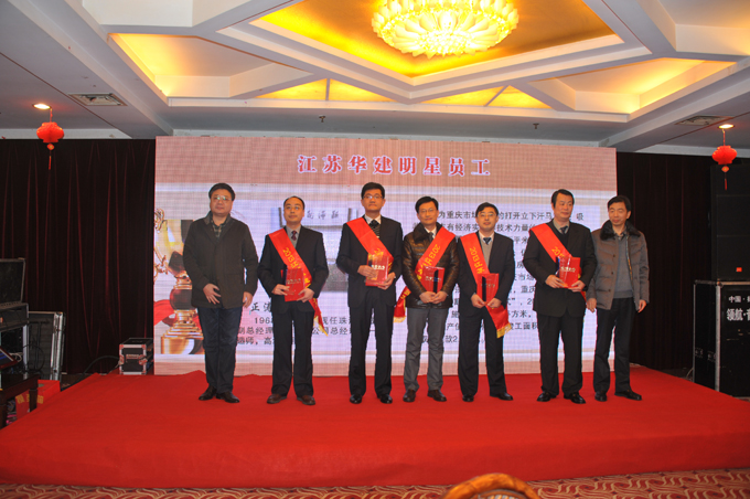 表彰會上,公司對2013年度表現(xiàn)突出的個人和團(tuán)隊進(jìn)行了表彰, 34位員工獲評“優(yōu)秀員工”稱號,朱靖、呂進(jìn)、嚴(yán)正濤、朱旭生、陳明等5同志被表彰為“明星員工”,華建地產(chǎn)運河城市廣場項目團(tuán)隊和江蘇華建成都分公司團(tuán)隊被表彰為“突出貢獻(xiàn)團(tuán)隊”。