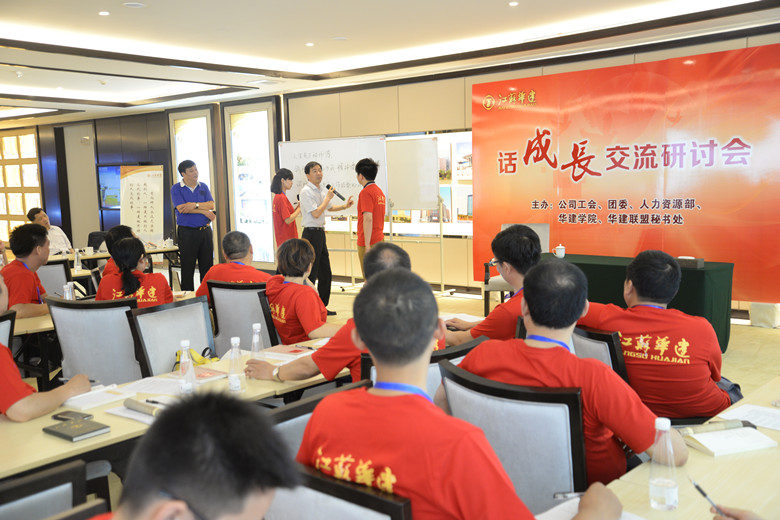 與會人員首先參觀了企業(yè)展示中心,合唱《華建之歌》,共讀《我要用全身心的愛擁抱今天》,身心得到了綻放。隨后,與會人員根據(jù)不同層次與類別分成了四大組,6名青年員工代表上臺分享了自己的成長經(jīng)歷,提出了成長過程中的困惑和未來職涯發(fā)展目標。
