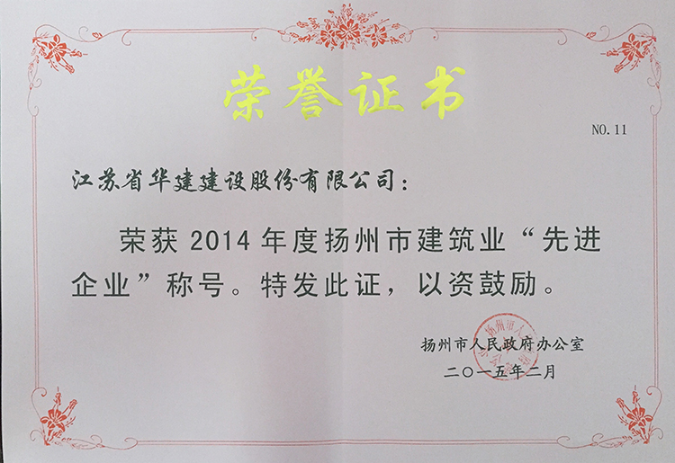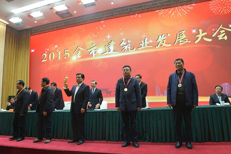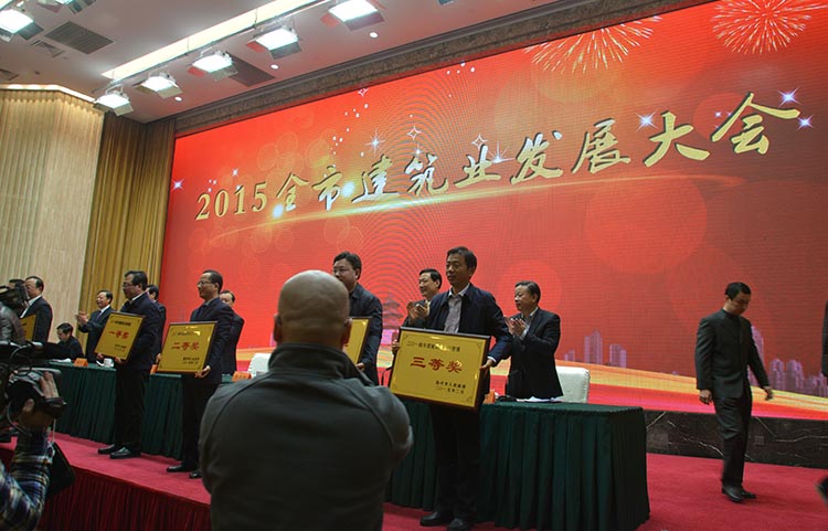 江蘇華建獲評揚州市建筑業先進企業 時間:2015-02-25 3358 2月25日,揚州市委、市政府召開全市建筑業大會,總結2014年全市建筑業工作并部署2015年工作。陸金龍董事長、宗有農總經理出席會議。會上江蘇華建被表彰為2014年度揚州市建筑業先進企業;建工控股公司獲市政府建筑業目標管理獎三等獎;宗有農總經理被授予2013-2014年度揚州市建筑功勛獎章,胡華兵等2人榮獲揚州市建筑業先進個人等榮譽稱號。
