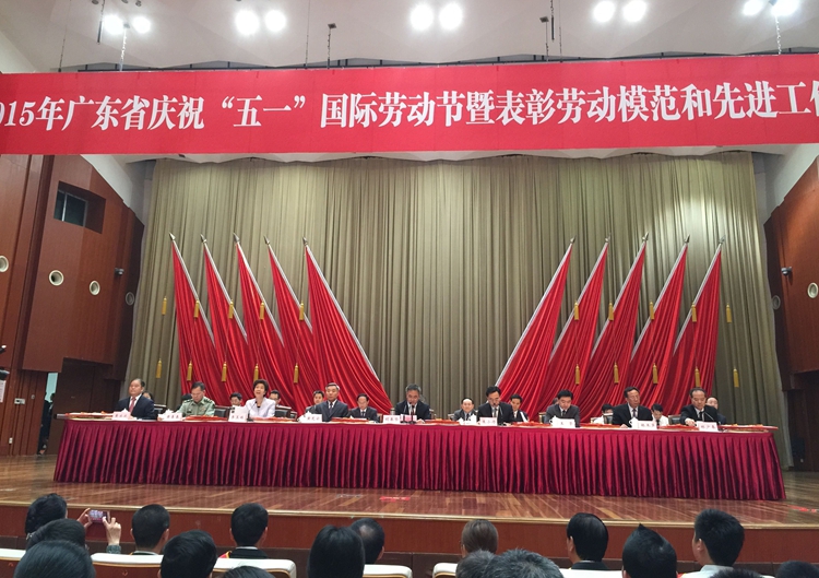 4月27日上午,2015年廣東省慶祝“五一”國(guó)際勞動(dòng)節(jié)暨表彰勞動(dòng)模范和先進(jìn)工作者大會(huì)在廣州白云國(guó)際會(huì)議中心舉行。廣東省委書記胡春華、省長(zhǎng)朱小丹等領(lǐng)導(dǎo)參加會(huì)議。