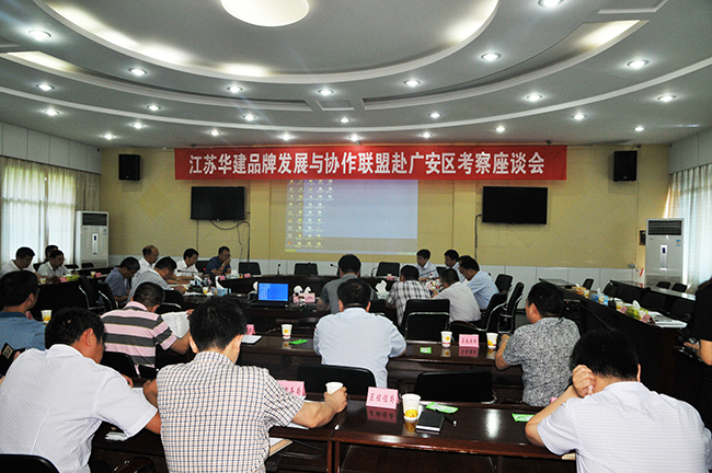 現(xiàn)場考察結(jié)束后,廣安區(qū)委書記文建平親自主持,在區(qū)政府七樓會議室舉行了“江蘇華建品牌發(fā)展與協(xié)作聯(lián)盟赴廣安區(qū)考察座談會”。調(diào)研組觀看了廣安區(qū)宣傳片及官盛新區(qū)概念規(guī)劃設(shè)計宣傳片,并聽取了吳榮勝區(qū)長對廣安的推介講話。華建聯(lián)盟常務(wù)負責(zé)人吳士茂在座談會的致辭中說,廣安是著名的英雄之鄉(xiāng),是改革開放總設(shè)計師鄧小平的故鄉(xiāng),江蘇華建近年來懷著對小平同志的崇敬之情,感佩于廣安領(lǐng)導(dǎo)和人民的熱情,積極參與廣安的經(jīng)濟建設(shè),貢獻自己的一份力量。這次特地邀請了華建聯(lián)盟部分成員單位的企業(yè)家到廣安學(xué)習(xí)調(diào)研,進一步尋找項目合作的機會,這是雙方加強深度合作、促進全面發(fā)展的共同愿望。華建在廣安的項目開展非常順利,政企合作非常愉快,這也給了我們很大的信心和決心,希望能夠在廣安這片熱土上,發(fā)揮華建聯(lián)盟企業(yè)的特長和優(yōu)勢,尋求更多的合作空間,為廣安的經(jīng)濟建設(shè)和社會發(fā)展貢獻更大的力量,為小平同志的家鄉(xiāng)添磚加瓦,造福廣安黎民百姓。他期望通過當(dāng)天短暫的學(xué)習(xí)交流機會和今后進一步的聯(lián)絡(luò)溝通,盡快找到雙方共同的合作需求,托起共同的事業(yè)。他還簡單介紹了華建聯(lián)盟的基本情況、經(jīng)營理念和運作機制。江蘇華建常務(wù)副總、華建地產(chǎn)和聯(lián)盟投資董事長程杰,中機環(huán)建集團董事長巫金林作為客商代表作了交流發(fā)言,表示通過調(diào)研考察,對廣安區(qū)特別是官盛新區(qū)的未來發(fā)展感到很振奮,進一步堅定了搞好現(xiàn)有項目的決心和加大投資的信心。文建平書記在最后的講話中高度評價江蘇華建在廣安項目上的建設(shè)投入力度,認為華建領(lǐng)導(dǎo)重視,工程進度快、質(zhì)量好,提升了廣安的城市形象。他希望在已經(jīng)形成的良好合作基礎(chǔ)上,與華建、華建聯(lián)盟進一步加強對接,架起深度合作的橋梁,在房地產(chǎn)開發(fā)、都市產(chǎn)業(yè)、工業(yè)地產(chǎn)、總部經(jīng)濟等方面尋求更多合作機會,實現(xiàn)雙贏。