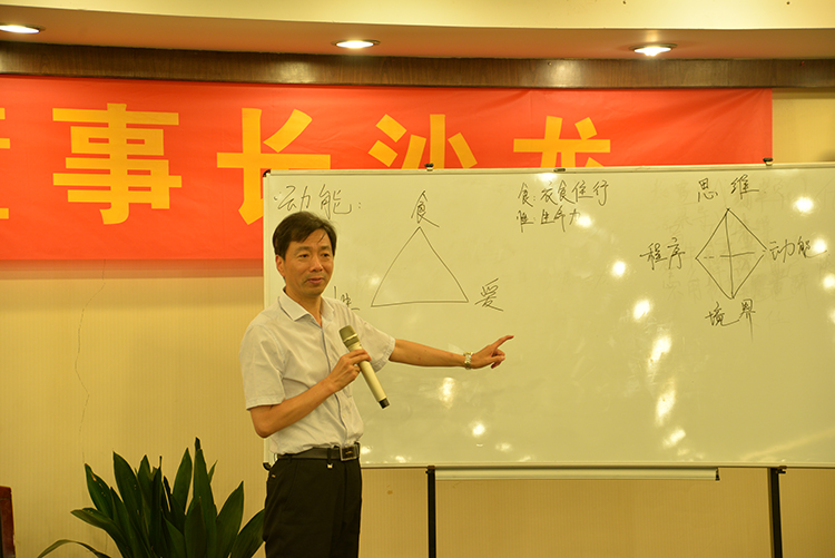 在主題活動董事長沙龍階段,11家成員單位的董事長重點就新常態(tài)下企業(yè)如何建立科學(xué)有效的分配激勵機制登臺分享路演,圍繞機制創(chuàng)新、成功案例進行分享,針對企業(yè)發(fā)展過程中遇到的問題提出困惑。企業(yè)多元持股結(jié)構(gòu)、區(qū)域公司模擬股份制、項目股份制、責(zé)任經(jīng)營等等,成功經(jīng)驗各具特色;物質(zhì)刺激達不到效果、職業(yè)合伙人如何向事業(yè)合伙人轉(zhuǎn)變、崗位年薪量化不科學(xué)等等,各類問題不一而足。陸主席逐個“診斷把脈”,條分縷析地給出指導(dǎo)建議和應(yīng)對之策。他指出,凡是事業(yè)不成功就是不懂得約定,舍得分只是格局,懂得分才是智慧。老板要善于經(jīng)營落差,數(shù)字說話,結(jié)果導(dǎo)向。經(jīng)營人就是要經(jīng)營人的神圣感,要把有本事的員工渡到他要去的彼岸,讓員工與社會、企業(yè)互生,先富起來,再立起來,然后再貴起來,從利益共同體向榮譽共同體和精神共同體過渡。最后,他提出了四個方面的要求:一是思維方面,他從“定義、原則、分配、市場化”這個金字塔維次上強調(diào),分配需要通過股權(quán)化、期權(quán)化、分紅化、薪酬化來運作,實現(xiàn)自主化、合作化、市場化、標(biāo)準(zhǔn)化。老板絕塵,讓全體員工發(fā)力,為過程鼓掌,為結(jié)果買單;二是程序方面,分配要有利他思想,對公司、分公司、項目團隊和個人都要分紅;三是境界方面,一個人的執(zhí)行力可以看他的狀態(tài)、能力和立場,老板和員工雙方都要進入新境界變成一伙人才能把公司搞好;四是動能方面,要從食(衣食住行)、性(生命力)和愛(愛自己、愛家庭、愛家族、愛公司團隊)方面全面要求,站在行業(yè)前沿,才能引領(lǐng)行業(yè)前行。