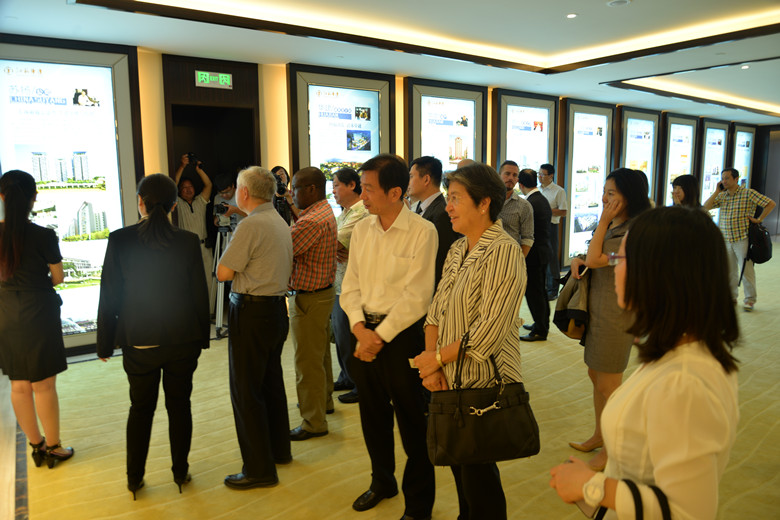 9月13日上午,來揚參加“中外絲路城市美食文化交流——揚州活動周”的一批外國友人,越南、文萊、緬甸、秘魯、毛里求斯、湯加王國、津巴布韋、韓國等國駐華大使(公使)、參贊、商務領事和意大利、阿爾巴尼亞有關官員,以及中國公共外交協會、中國——東盟中心、察哈爾學會負責人,包括香港衛視、大公報、中國新聞社、中國日報社、中國人民廣播電臺、中國網、意大利24小時太陽報的媒體記者等約40人,在市外事辦公室主任鄧清和江蘇華建董事長陸金龍陪同下,專程到江蘇華建展示中心參觀考察,并希望江蘇華建作為中國建筑業的品牌企業,能夠借助“一帶一路”國家戰略,發揮自身的實力優勢,到國外市場進行戰略合作。陸金龍董事長在餐敘前的講話中進一步介紹了華建的實力和戰略構想,表達了拓展海外市場的意愿。最后中國公共外交協會副會長呂鳳鼎、中國——東盟中心秘書長楊秀萍女士分別講話,盛贊江蘇華建輝煌的歷史、卓越的品牌、強大的規模實力以及在接待服務中展示出來的大企業的水平。呂會長說江蘇華建給他留下了深刻的印象,希望華建取得越來越大的成就。楊秘書長說,華建在走向改革開放之初的深圳開創了成功的事業,中國——東盟中心愿意為中國和東盟企業的發展牽線搭橋,找到雙方共贏的平臺,希望外國企業在中國找到發展商機,中國企業在國外找到合作良機。